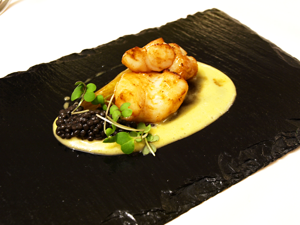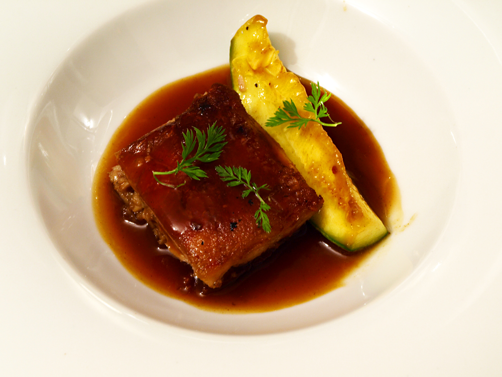 - Black pork neck with French truffle, mustard sprouts and truffles’ oil, with a hidden touch of salt and the fabulous parfume that goes with this elegant bite.