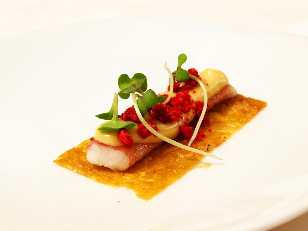 - San Pedro Fish with olive oil emulsion and herring roes