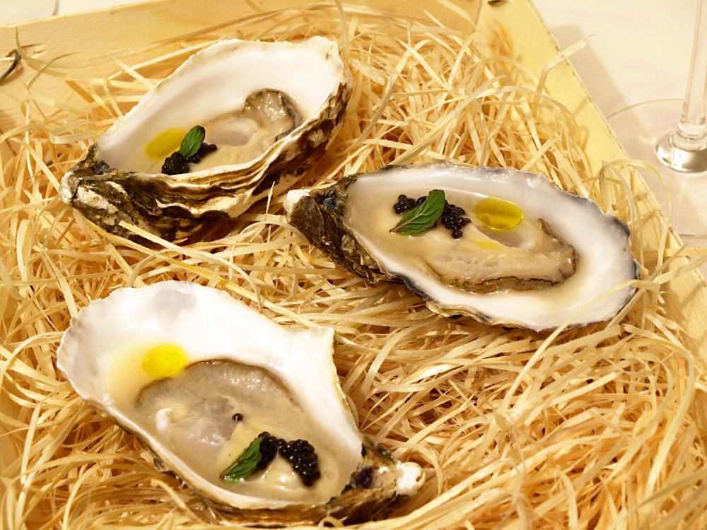 - Gillardeau oysters with leechees vinegar, Persé caviar and mint came with Fruity white Albariño wine, with citric notes.Really fresh