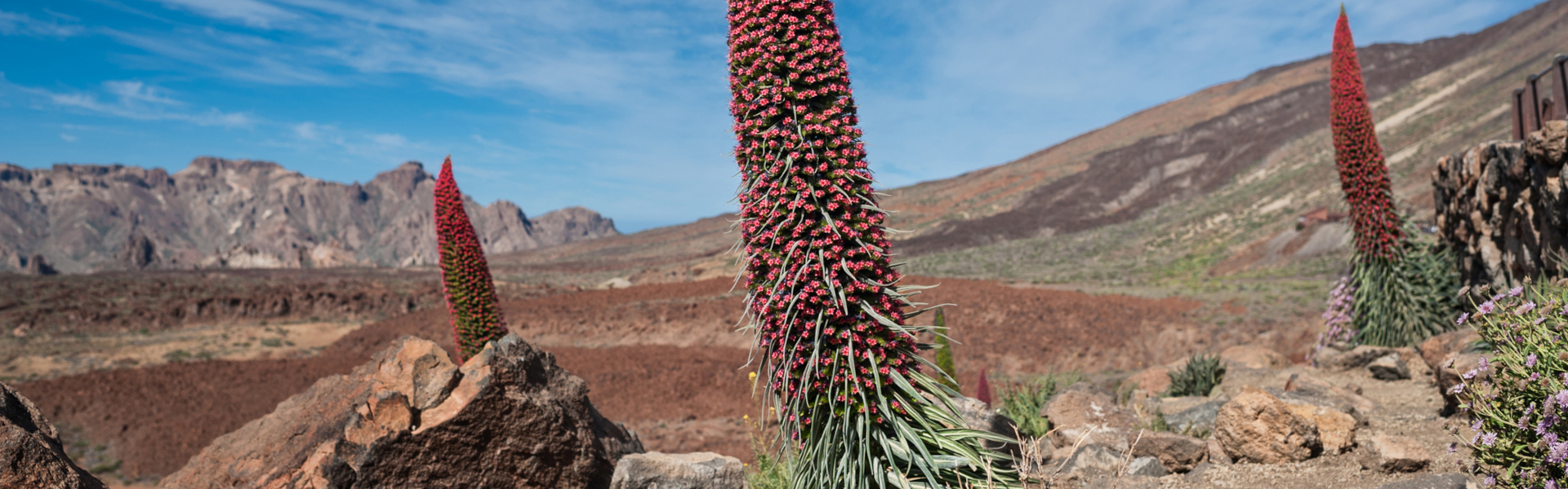 Red bugloss (tajinaste rojo in Spanish) is a plant native to the Canary Islands, blooming into clusters of little red flowers arranged on stems that soar like towers. At this time of year, red bugloss punctuates the volcanic landscape, lighting up with its glittering red lantern-like blossoms.