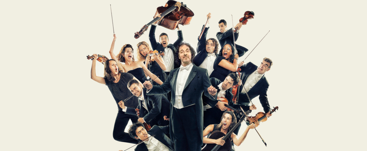 On stage, twelve musicians and a conductor, revisiting some of the most popular works by classical composers in a show that brings music and comedy together. The show is targeted at both adult audiences, who get caught in the power struggles, lack of discipline and chaos within the orchestra, and children, who will love the gags and jokes on stage.