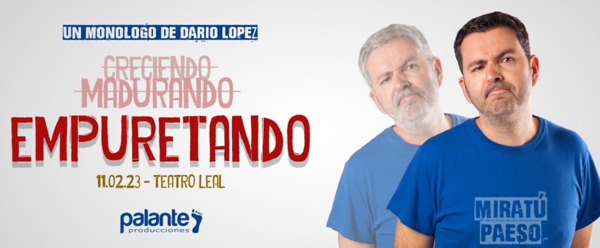 Local comedian Darío López is coming on stage with a new show, Empuretando, about a boy, “un pibito”, with the flair of a gentleman – a fun show about growing up and growing old.