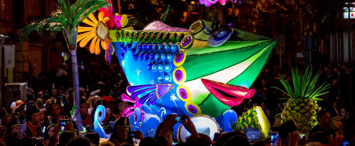One of the big events of Carnival in Santa Cruz de Tenerife takes place on Wednesday, 22 February. It is known in Spanish as “Entierro de la Sardina” (Burial of the Sardine). Marking the end of the Carnival season, it fills the streets with widows mourning the “death” of Carnival (Don Carnal) in the form of a sardine carried on a special float. The choice of the sardine has to do with the city’s fishing tradition. At the end, the float is burned as a form of farewell to Carnival.