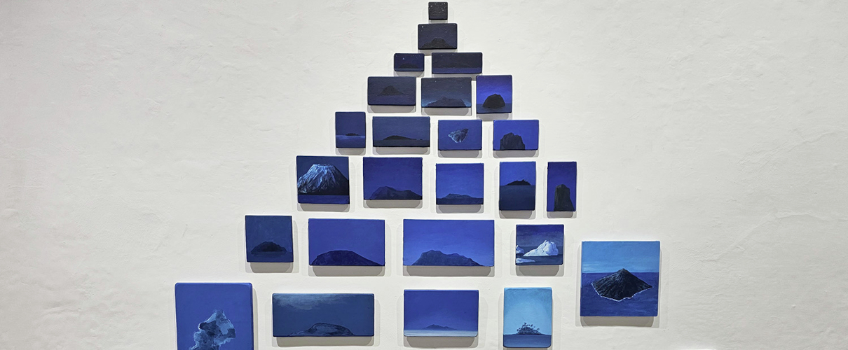 In the first section, artist Ángel Padrón unfolds a series of time lines and folds them again over themselves in a visual composition, like “metaphors from which life springs up.” In the second section, the artist creates a viewpoint to look into blue space – a symbolic and compositional point to take a look at the world: islands, mountains, roads, surfaces, light.