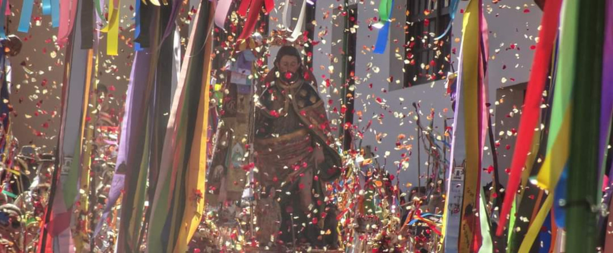 Hundreds of pilgrims fill the roads leading to the shrine of St Roch, at the entrance of the town. The whole town wakes up to the sound of “Viva San Roquito” (Long Live St Roch), “San Roquito” being the affectionate name used by locals to refer to the patron saint. Then, the revered statue of St Roch is carried by a group of devotees to the Parish Church of Santa Ana, where the main religious ceremony takes place.