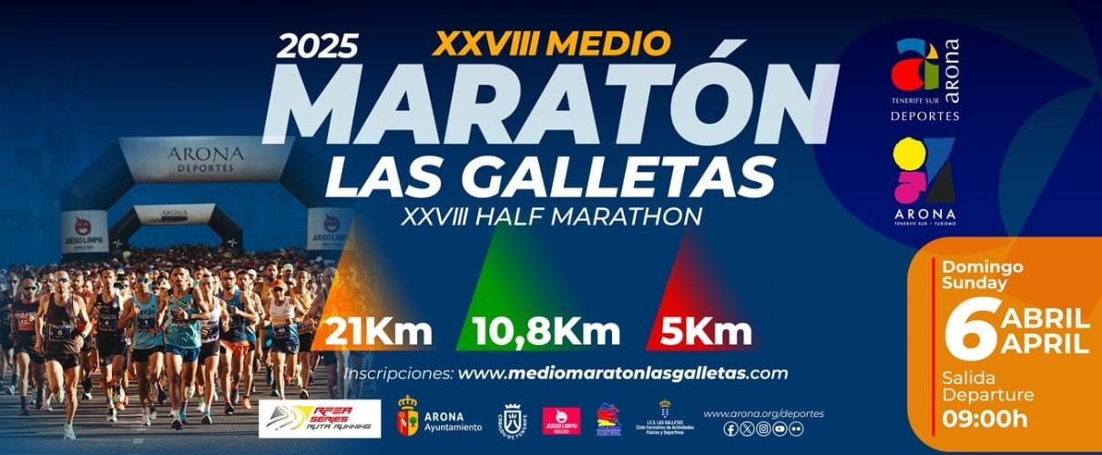 Take part in the 28th Las Galletas Half Marathon on the 6th of April, starting at 09:00 h.
