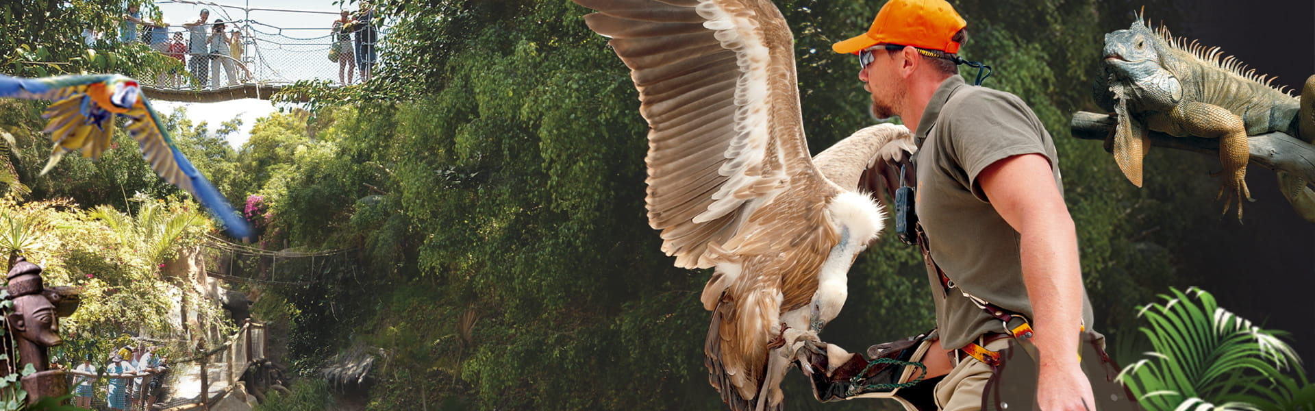Europe’s only jungle with wild vegetation. Covering 75,000 square metres, Jungle Park is home to more than 400 animals and over 100 different species. You won’t be able to forget the two incredible shows, Sea Lions and Birds of Prey. Enjoy watching our keepers feed Humboldt penguins, raccoons, and coatis. Eagles, falcons, vultures, marabou, cranes, ibis, flamingos, swans, storks, parrots, macaws, parakeets, toucans, cassowaries and countless other exotic birds add an artistic touch to our little paradise (as if it weren’t already charming enough) with their remarkable abilities.