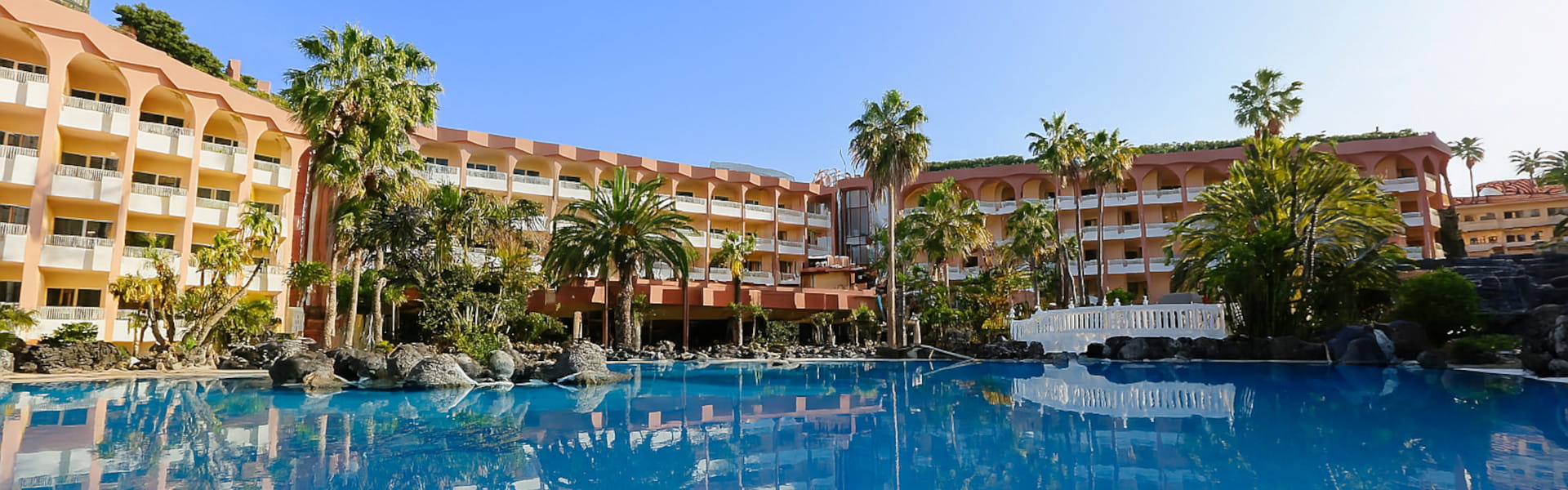 The 4-star Hotel Puerto Palace is located in a quiet residential area of Tenerife, at the foot of the magnificent Orotava Valley. In an unbeatable environment, 800 metres from the centre of Puerto de la Cruz and very close to the area of restaurants, shops and leisure centres, the hotel offers the perfect environment to enjoy your holidays.
