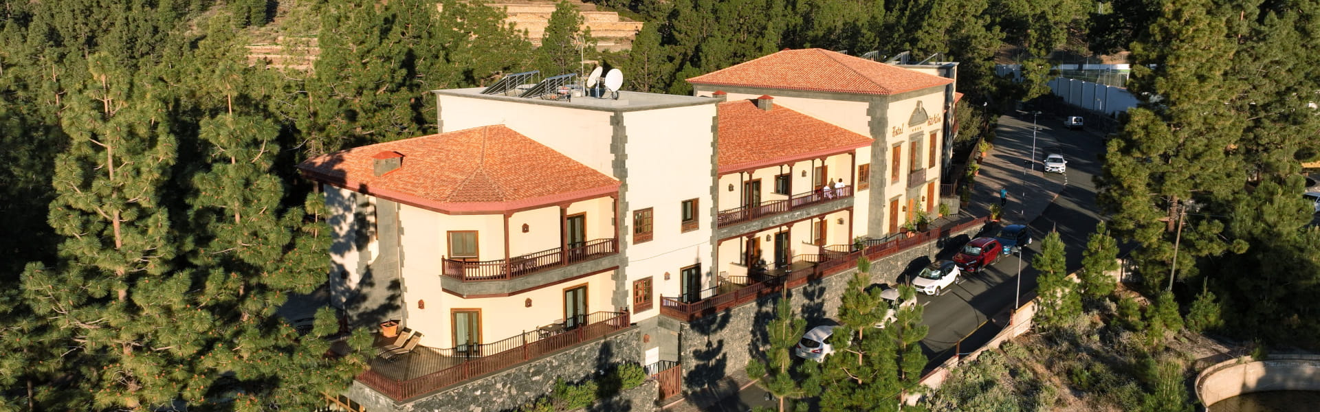 Hotel Spa Villalba is located right in the Corona Forestal Nature Park, at an altitude of 1,500 metres, between Tenerife's sea and its sky. It is only twenty-two kilometres from the coast and fifteen from Mount Teide National Park. Its impressive Canarian colonial architecture and its décor with natural elements such as wood and stone create a unique atmosphere, in total harmony with the exuberant natural surroundings.
